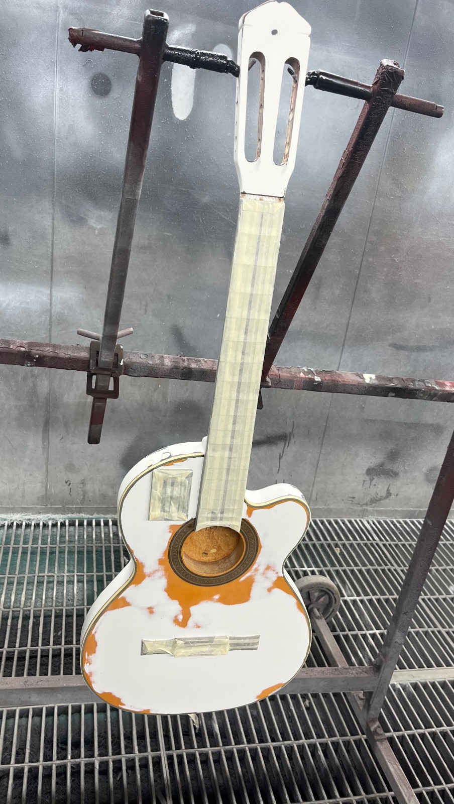 Cette semaine nous peignons une guitare de valeur sentimentale et la restaurons.